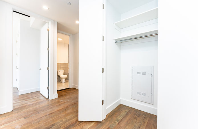 Majestic High ceilings provide a spacious feel and ample sunlight.Ample closet space! – Custom built-in floor-to-ceiling, closets in all bedrooms, pantry, and coat closet.extra large living space easily converted into a third bedroom.Central AC with temp control in each room.Private outdoor spaceOutdoor storage for bikes. A,C,L Is Just steps away of the Unit
